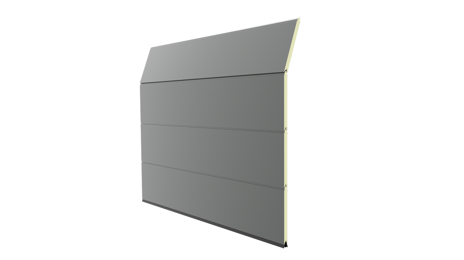 Deze 40 mm dikke geïsoleerde garagedeur heeft één diepe horizontale belijning met een glad oppervlak. Standaardkleuren zijn RAL 9016, RAL 7016 en RAL 9005.