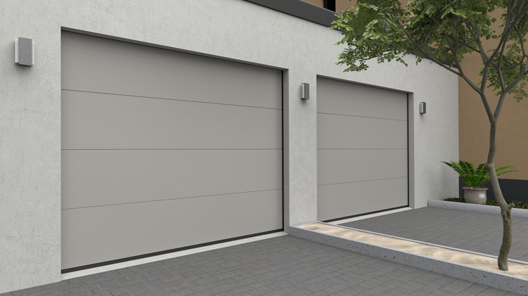 Deze 40 mm dikke geïsoleerde garagedeur is uitgevoerd met meerdere ondiepe horizontale belijningen en voorzien van een stucco structuur (sinaasappelschil). Dit deurbladmotief is in 18 standaardkleuren te verkrijgen.